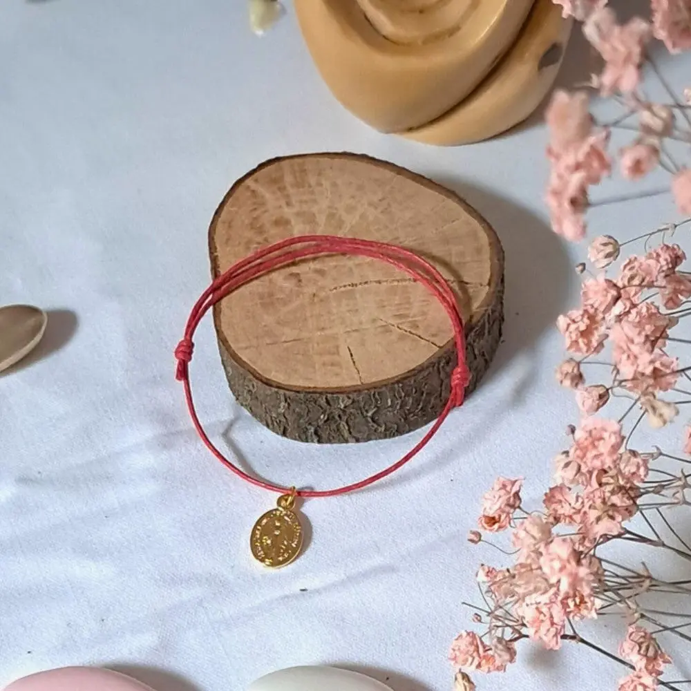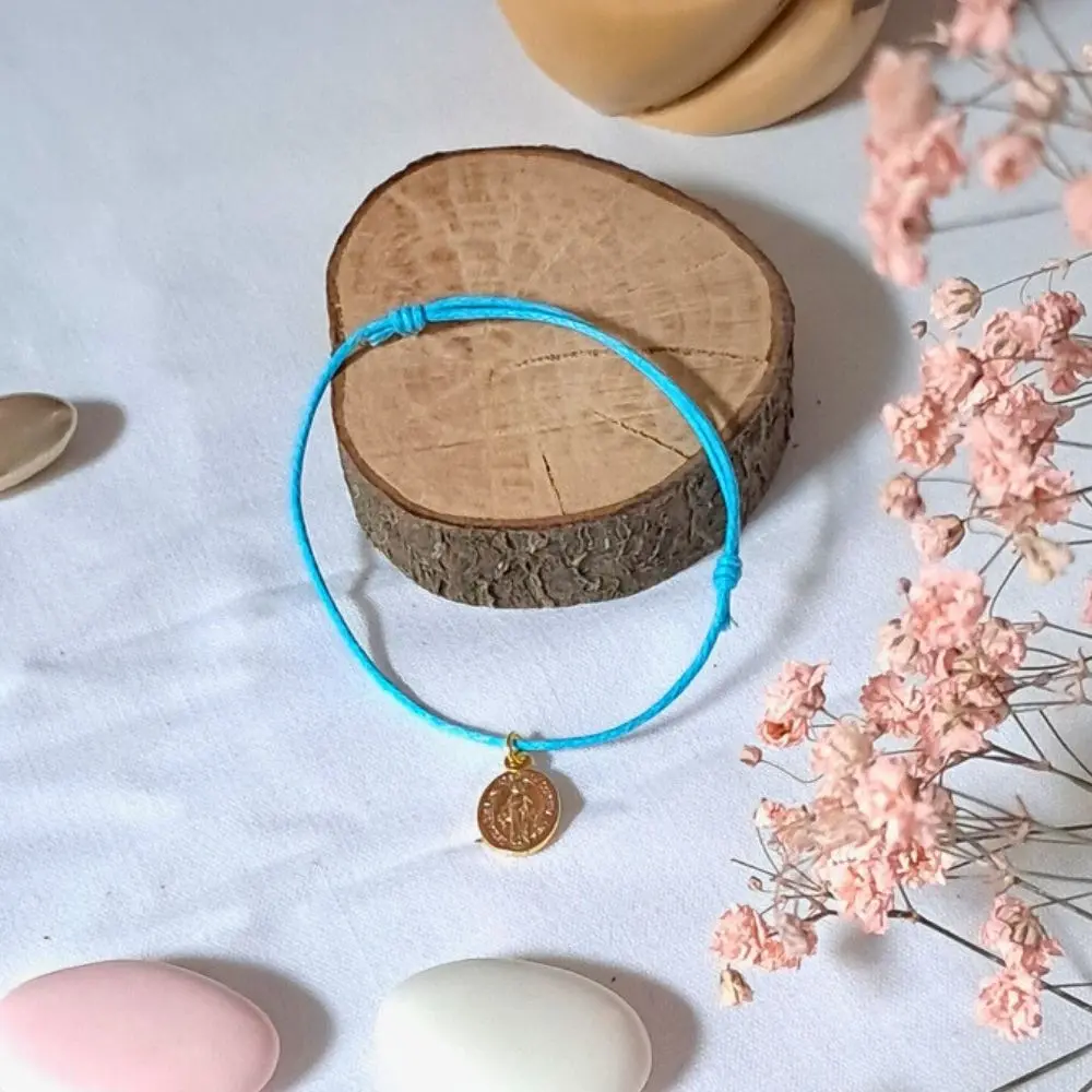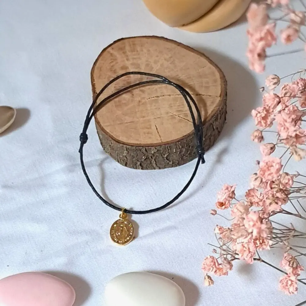 Un bracelet délicat en coton ciré, orné d’une petite médaille miraculeuse dorée pleine de douceur.