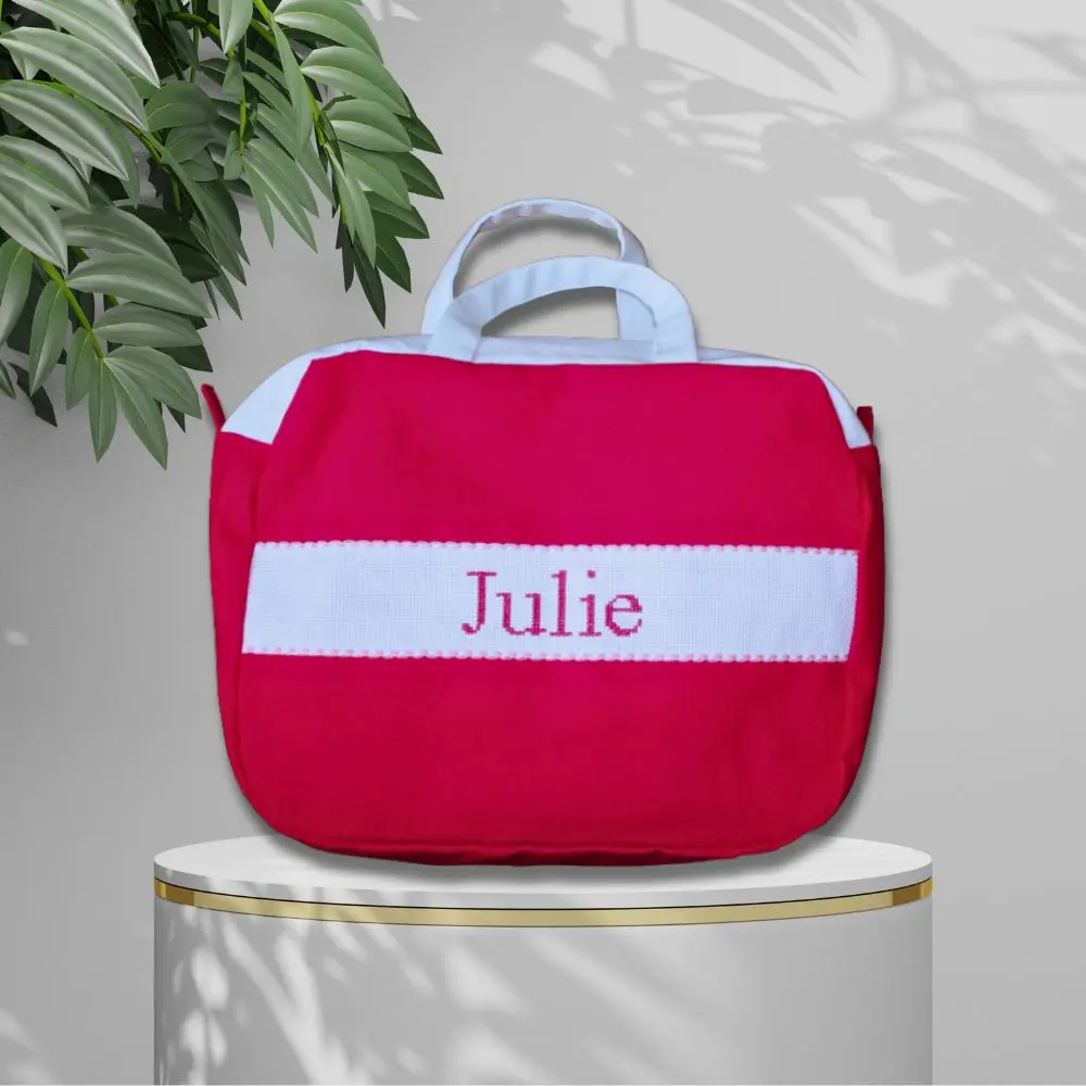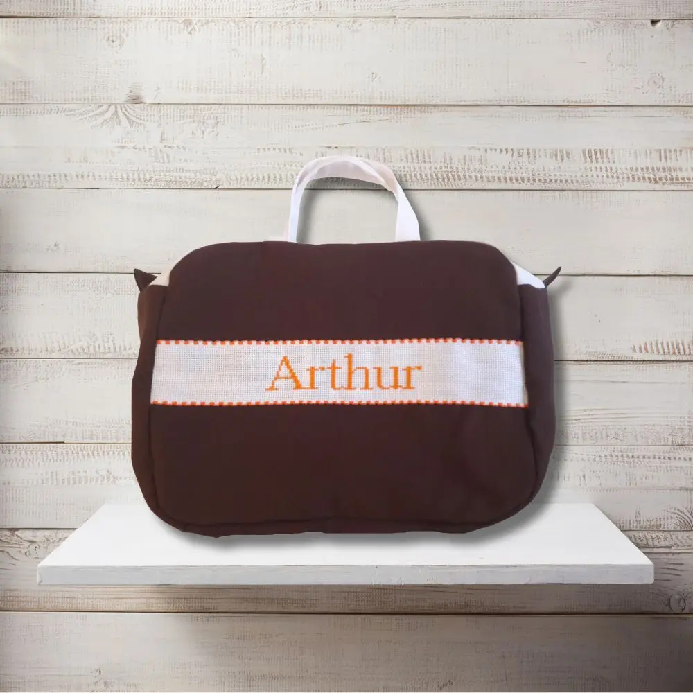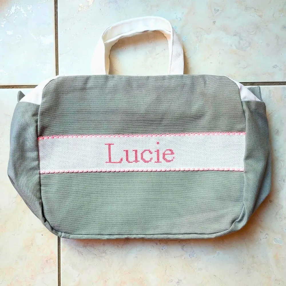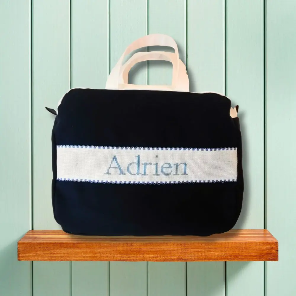 Une trousse de toilette grande contenance et raffinée, personnalisée par un prénom brodée main. Parfaite pour emporter l’essentiel, en voyage comme au quotidien. Idéale pour petits et grands.
