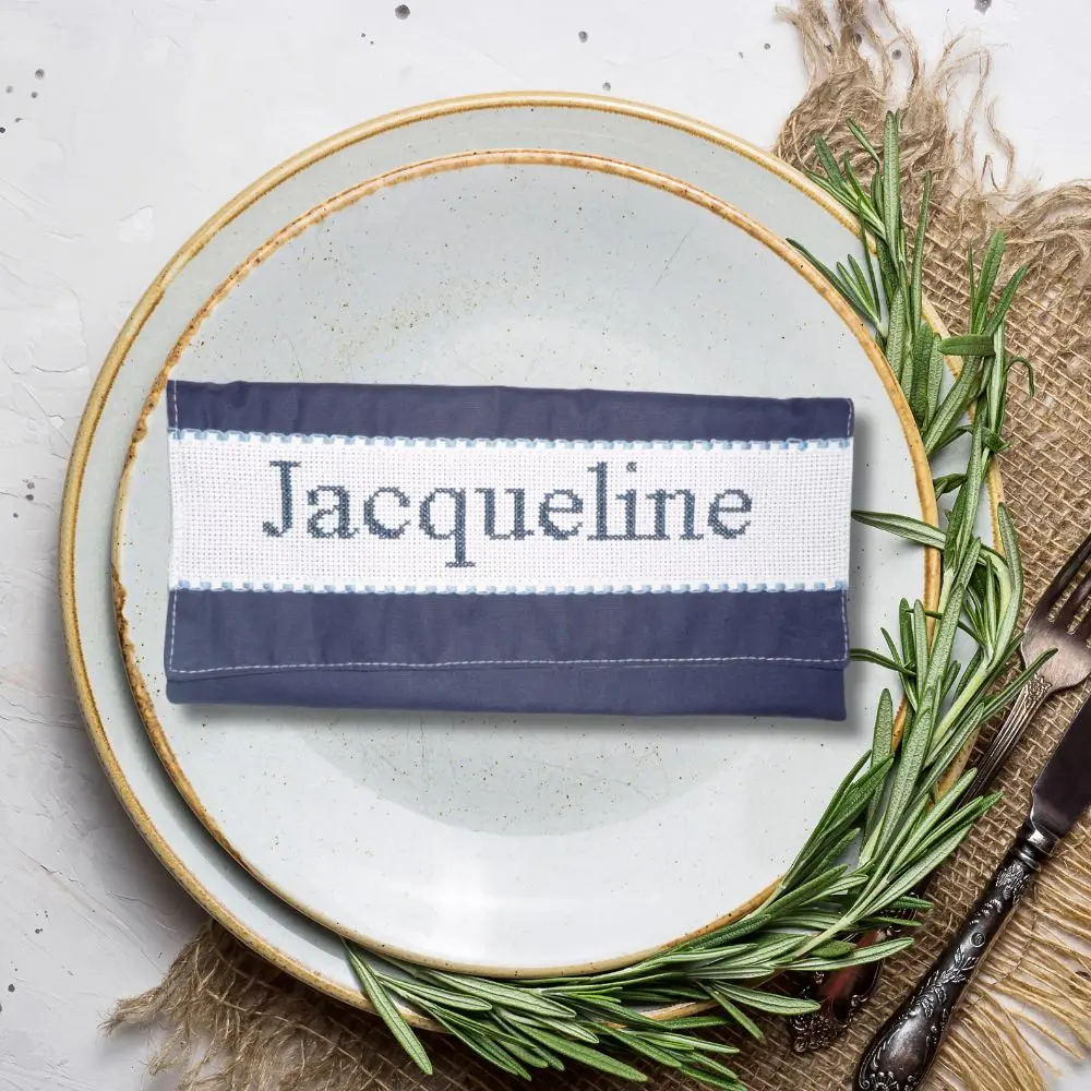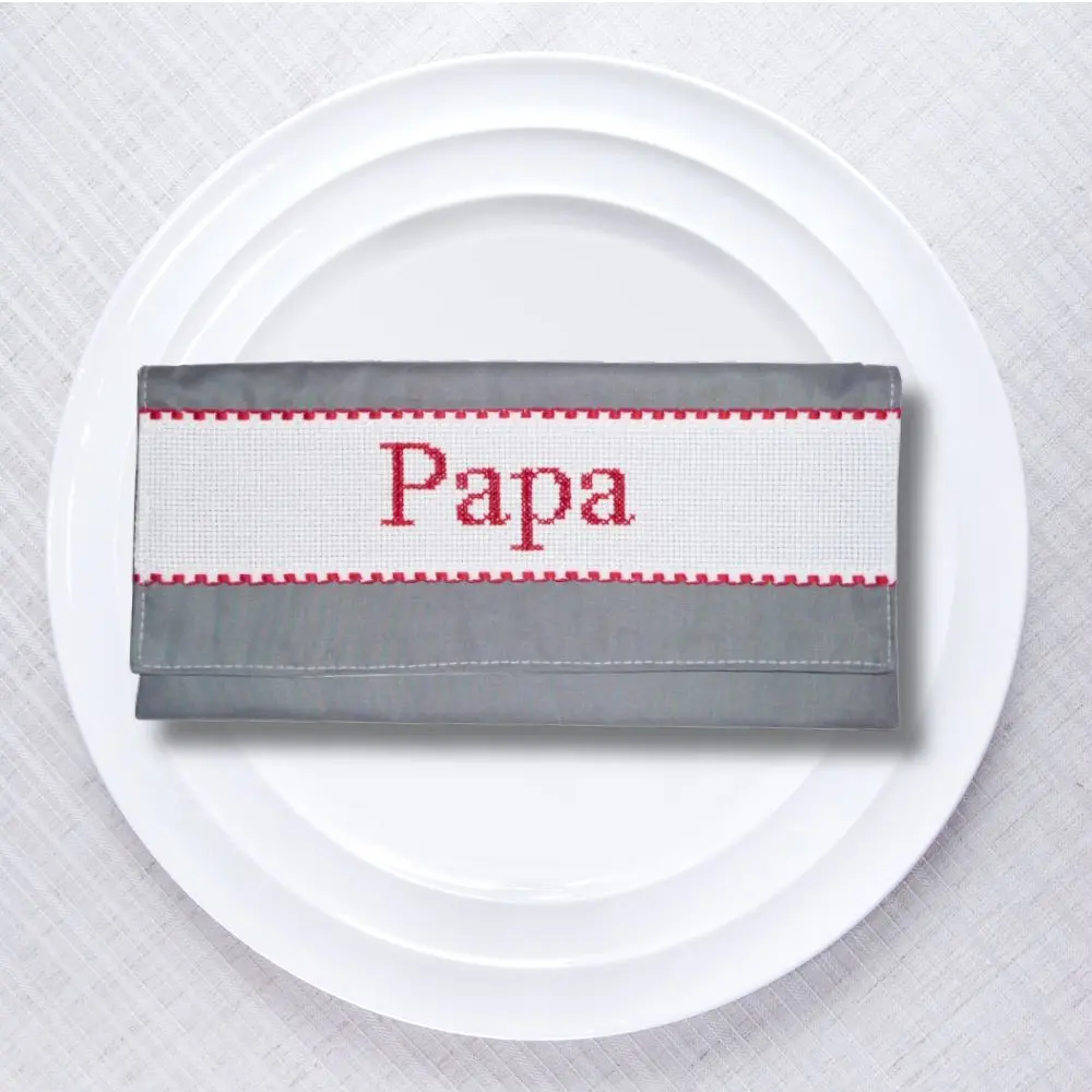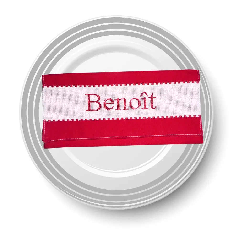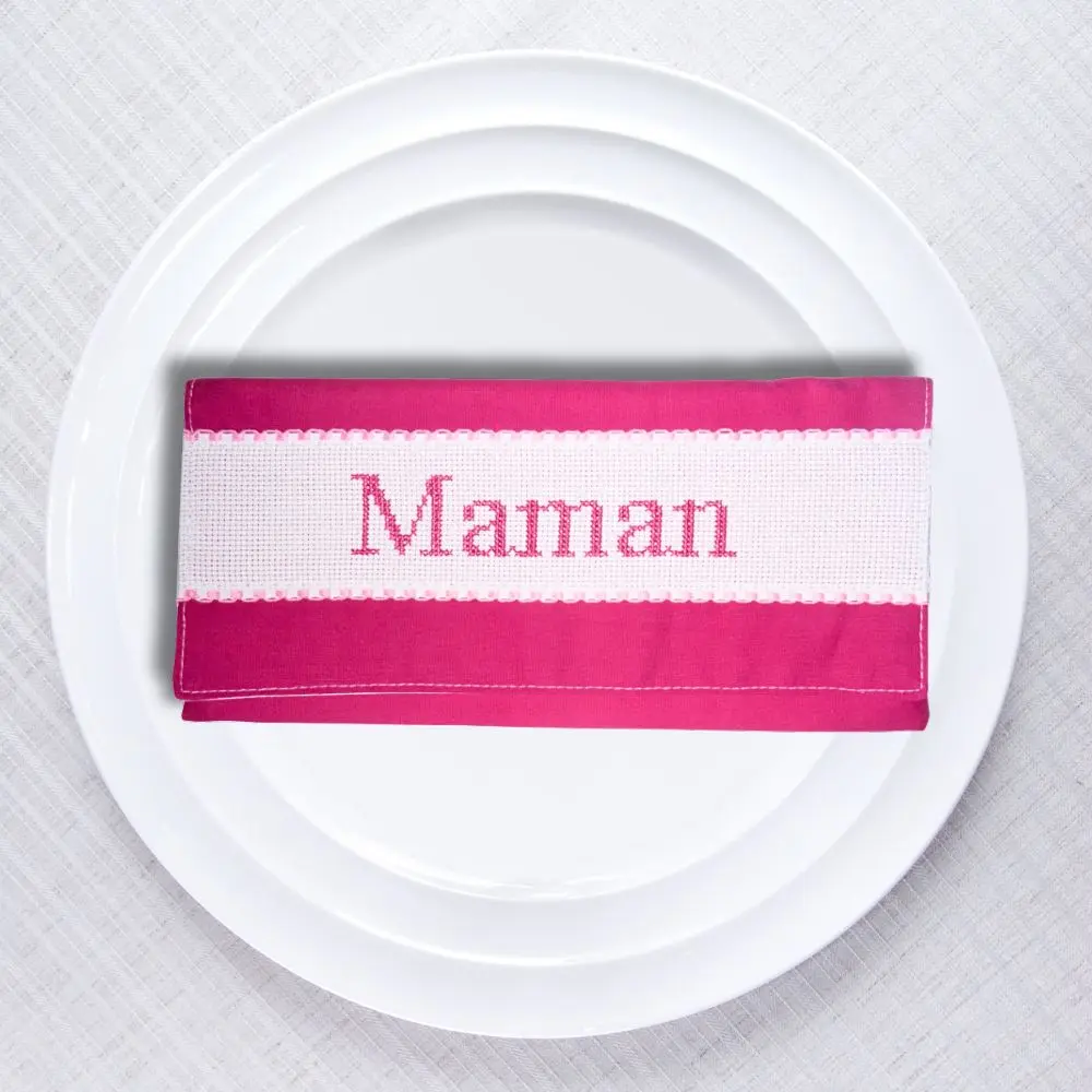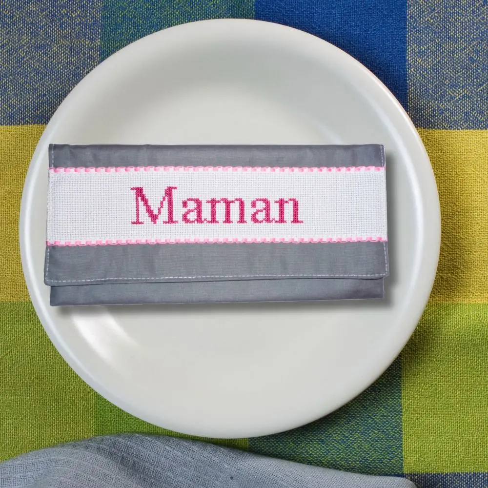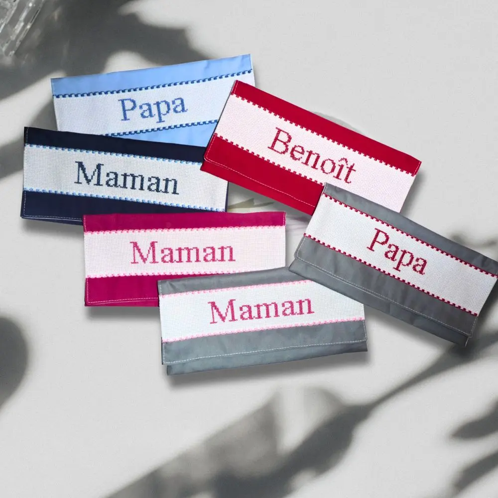 Un petit détail qui change tout à table : chaque membre de la famille retrouve sa serviette grâce à sa pochette brodée à son nom. Pratique, élégant et fait main.
